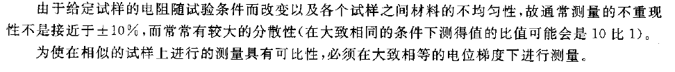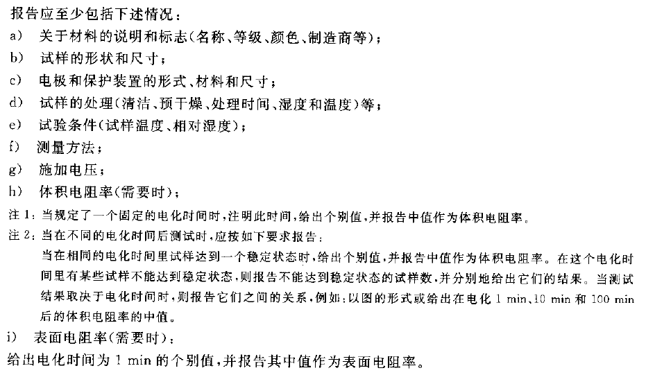 表面电 阻,特别是当它较高时,常以不规则方式变化,且通常非常依赖于电化时间。因此,测量时通常规定一分钟的电化时间。