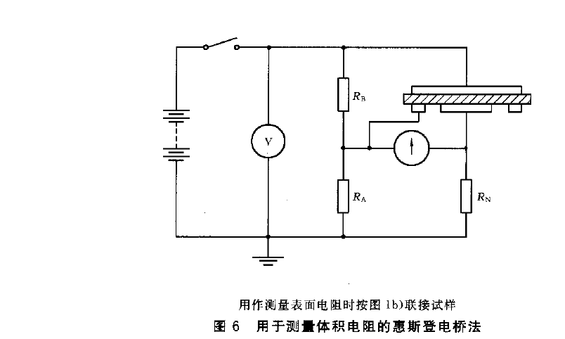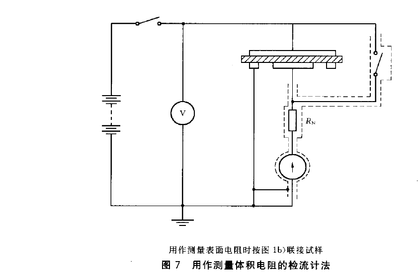 施加规定的直流电压,测定试样表面的两个测量电极间的电阻。应在1min的电化时间后测量电阻,即使在此时间内电流还没有达到稳定的状态。