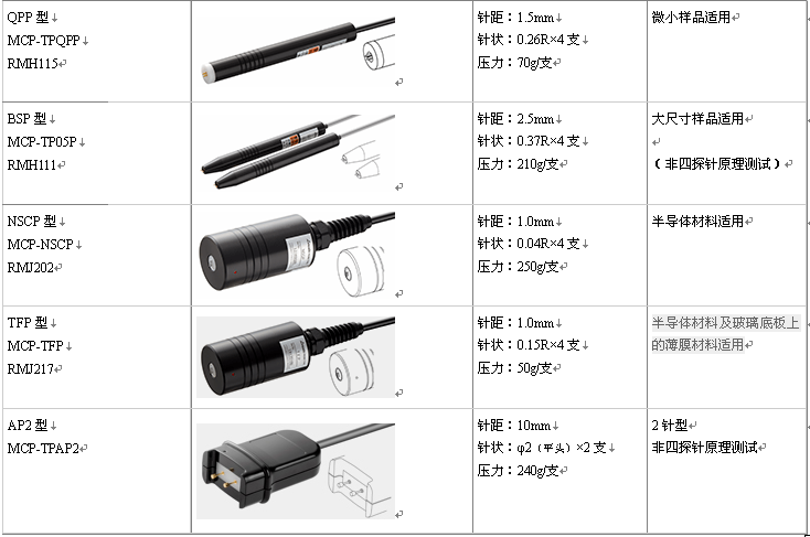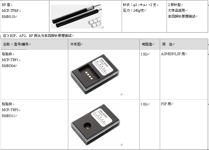 8、可更换MCP多种探头;四种测试单位Ω、Ω/口、Ω.cm、S/cm转换