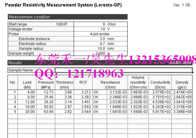 测定对象:金属粉、碳粉类、陶磁粉…等导电性粉体