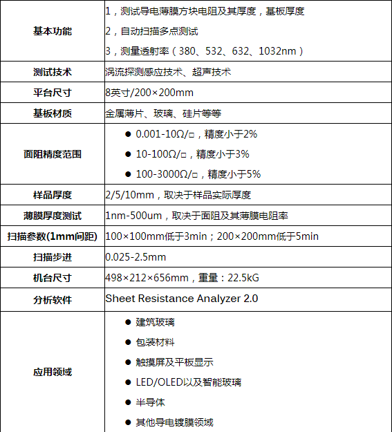 EddyCus® TF map 2520测试导电薄膜方块电阻及其厚度、基板厚度,并且自动扫描多点测试