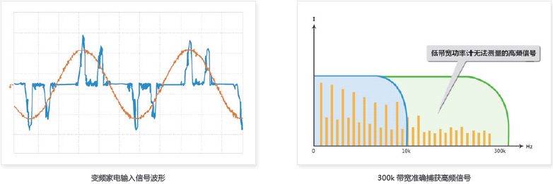 针对变频设备、开关电源的测试,PA300 系列功率计具备以下优势: