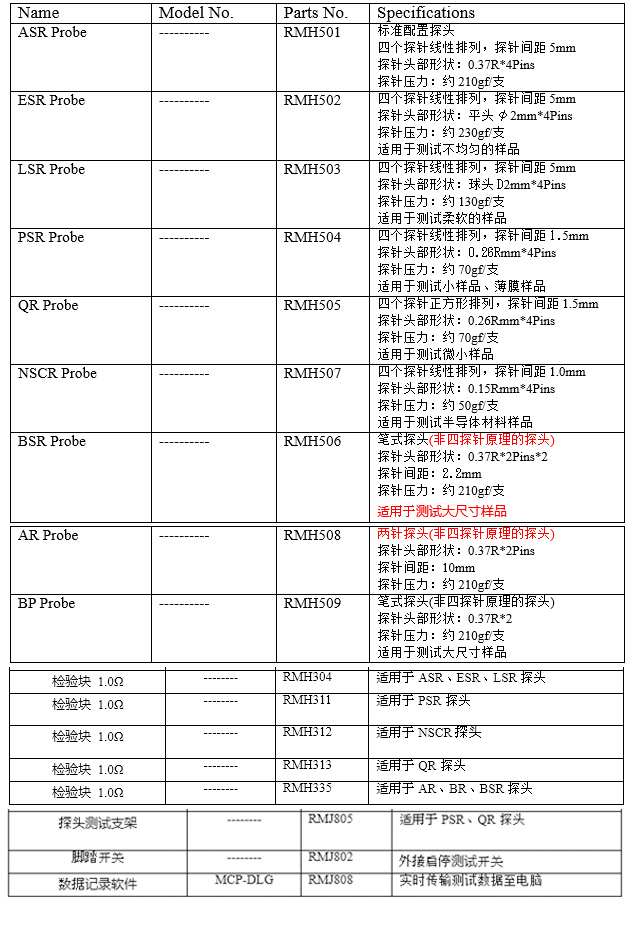 | ASR Probe ASR探头 | / | RMH501 | 1 |
